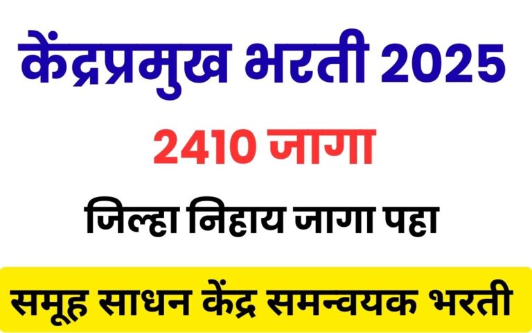 Kendrapramukh Bharti 2025 : समूह साधन केंद्र समन्वयक (केंद्र प्रमुख भरती ) मर्यादित विभागीय स्पर्धा परीक्षा-२०२५ अधिसूचना जारी करण्यात आली आहे. महाराष्ट्र राज्यातील सर्व जिल्हा परिषदेमधील कार्यरत प्रशिक्षित पदवीधर शिक्षक (प्राथमिक) व …