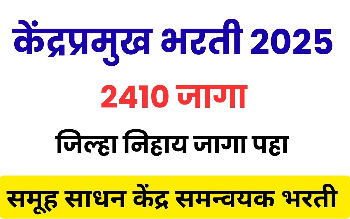 Kendrapramukh Bharti 2025 : समूह साधन केंद्र समन्वयक (केंद्र प्रमुख भरती ) मर्यादित विभागीय स्पर्धा परीक्षा-२०२५ अधिसूचना जारी करण्यात आली आहे.